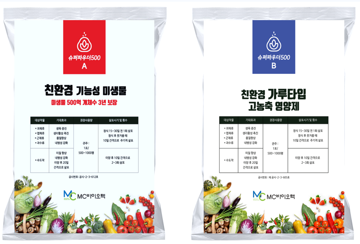 슈퍼파우더 500 A/B는 전남대학교 친환경농업연구센터 교수진과 공동 연구를 통해 개발한 고기능성 미생물·영양 복합 제품입니다.